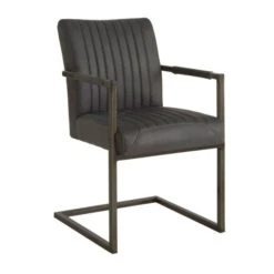 De Tower Living Ferro armstoel combineert het stoere karakter van industrieel design met het comfort van de moderne tijd. De zitting en rugleuning zijn gemaakt van kunstleder en zorgen samen met de luxe armleuningen voor een fijne zit. De armstoel is verkrijgbaar in antraciet, lichtbruin of donkerbruin met een onderstel van donker metaal. Kies je favoriet of combineer twee kleuren voor een speels effect aan tafel!