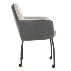 Bij de Eleonora Soof eetkamerstoel heb je keuze uit 4 kleuren leer: bruin, cognac, donkergrijs en taupe. Het zachte bouclé heeft een neutrale, grijswitte tint. Welke eetkamerstoel op wieltjes is jouw favoriet? Of combineer twee kleuren leer voor een speels effect! Dankzij de schuimvulling, bouclé en armleuningen zit je heerlijk luxe op deze eetkamerstoel.