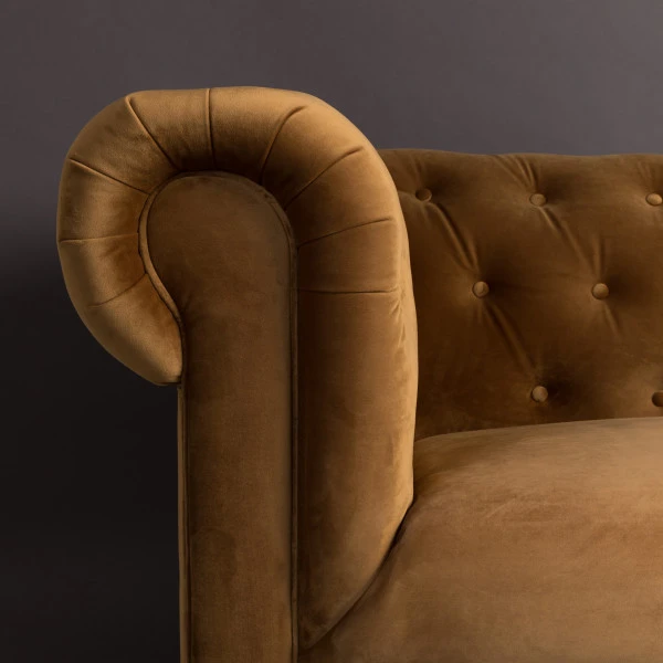 Bij de Dutchbone Chester bank heb je keuze uit vier kleuren bekleding: bruin, groen, roze en honing. De fluwelen stof versterkt de vintage uitstraling van de Chesterfield bank en zit bovendien heerlijk comfortabel! Met een breedte van 186 centimeter is dit een riante tweezitsbank. Maak de zithoek compleet met een Chesterfield fauteuil en een vintage salontafel erbij.