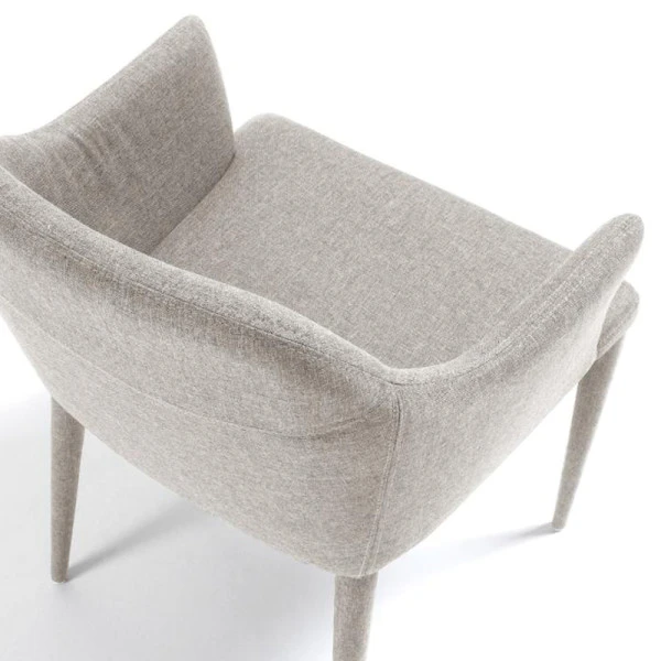 In de Kave Home Croft serie vind je, behalve deze volledig gestoffeerde eetkamerstoel, ook een variant met poten van essenhout en een grijze of gele kuip van stof. Hoewel beide varianten een moderne uitstraling hebben past de eetkamerstoel met essenhout vooral erg mooi in een Scandinavisch design interieur.