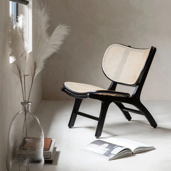 - Rugleuning en zitting van naturel rotan webbing