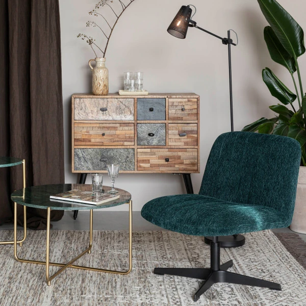 De draaistoel is verkrijgbaar in 2 kleuren ribstof: groen of geel. Welke past het beste in jouw zithoek? Of zet de draaistoel bij het raam zodat je overdag in het zonnetje kunt lezen. De dikke, brede kussens van ribstof maken deze draaistoel bijzonder comfortabel.