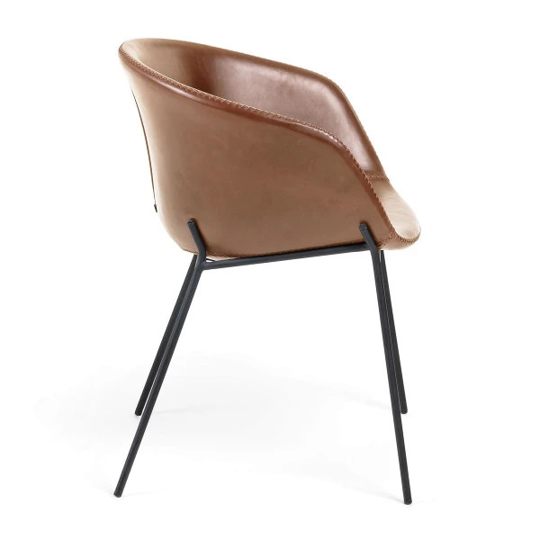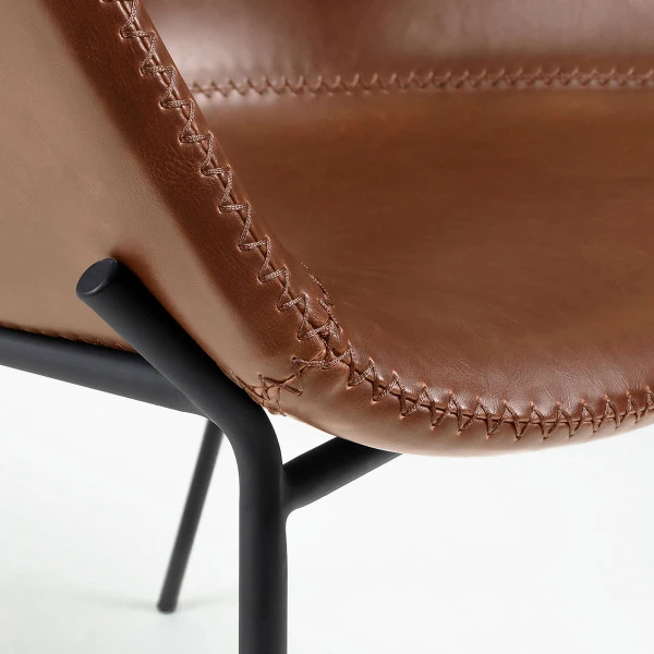 Deze Kave Home Yvette eetkamerstoel brengt sfeer, karakter en design naar je eethoek. De bruin leren kuipzitting heeft een warme tint en is subtiel versierd met decoratieve stiknaden. Voor een vintage tintje in het moderne geheel! In de kuip van kunstleer zit je bovendien heerlijk comfortabel: geniet in stijl van de maaltijden.