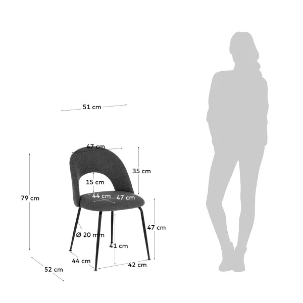De Kave Home Mahalia eetkamerstoel valt op dankzij het minimalistische design met slanke poten en een open rugleuning. De eenvoudige lijnen zorgen voor veel rust in je interieur! Daarbij heb je keuze uit drie kleuren stof: lichtgrijs, donkergrijs en geel. Combineer de kleuren voor een speels effect aan tafel! Dankzij de waterafstotende stoffering is de eetkamerstoel gemakkelijk schoon te maken.
