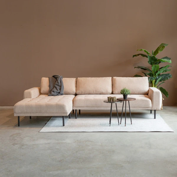 Bij deze hoekbank kun je zelf bepalen of je de chaise longue links of rechts wil hebben: voor de perfecte match met je zithoek. Bovendien heb je keuze uit drie kleuren hoekbank: beige, antraciet en roestbruin. Welke is jouw favoriet? Het elegante design maakt de hoekbank geschikt voor in een modern interieur.