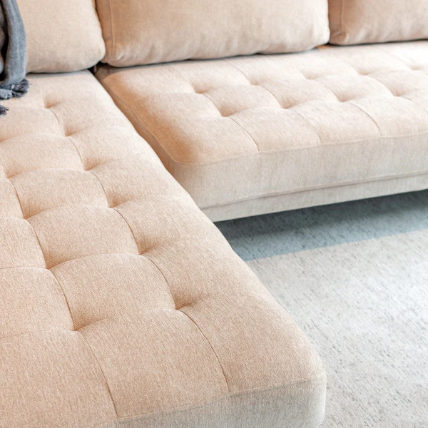 - Moderne hoekbank met gecapittoneerde zitting
