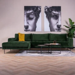 Met deze elegante hoekbank lig je als een diva languit op de chaise longue, te kijken naar je favoriete serie op tv. Je partner kan er lekker bij komen liggen, of houd je de chaise longue als een echte diva helemaal voor jezelf? Ook voor gasten heb je voortaan ruim plek op de hoekbank van 285 centimeter breed!