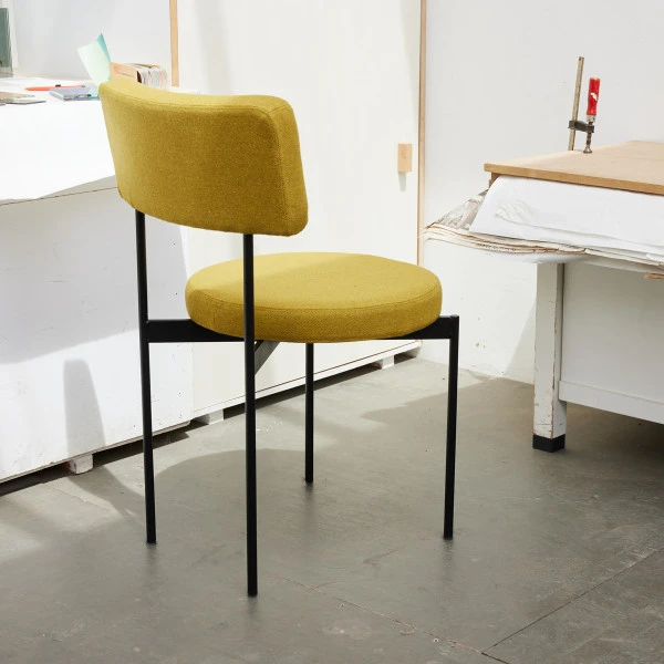 - Het frame is gemaakt van staal en de stof die wordt gebruikt is 75% virgin wool en 25% flax.