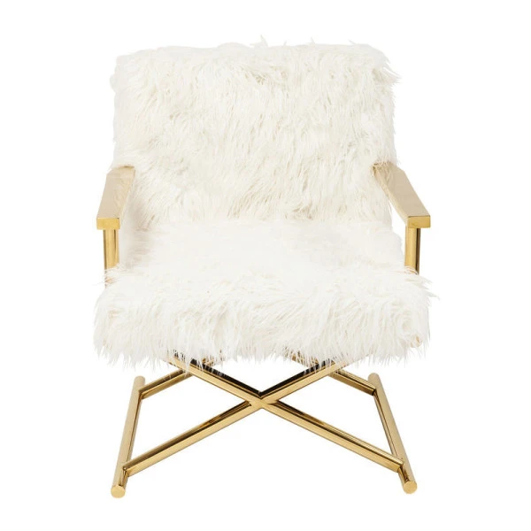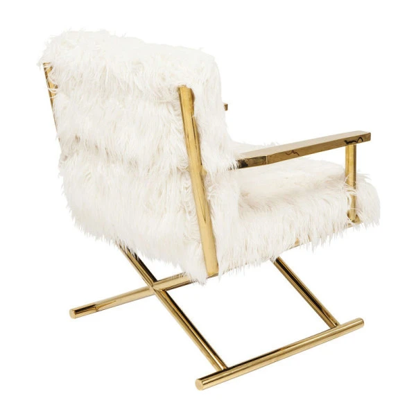 In de Kare Design Mr. Fluffy fauteuil voel je je de koning te rijk. Met haar gouden poot en pluizige witte zitting heeft de design fauteuil een extravagante uitstraling waar je naar blíjft kijken! En die je ook moeilijk kunt weerstaan, zodat het ineens elke avond lukt om lekker te ontspannen. De gouden armleuningen en zachte “vacht” van de fauteuil maken deze extra comfortabel.