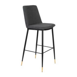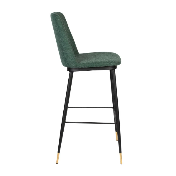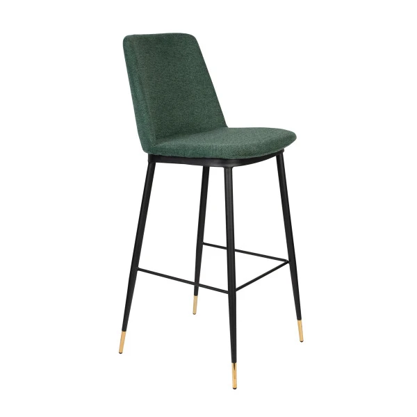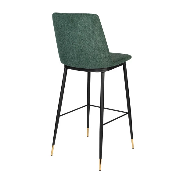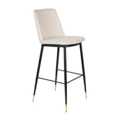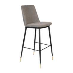 Deze hoge barstoel van stof is uitgevoerd in de perfecte mix van stijl en comfort. Slanke poten met gouden sokjes geven de barstoel een elegante look. Tegelijkertijd zorgen de hoge rugleuning en zachte kussens voor een aangename avond. Of je nu met vrienden een drankje doet, of gezellig dineert met je partner! Je hebt keuze uit vier verschillende kleuren stof: beige, donkergrijs, lichtgrijs of groen.