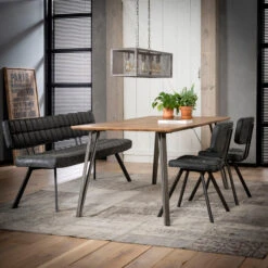 Combineer de industriële eetkamerstoel met een bijpassend eetkamerbankje voor een speels effect aan tafel! Je vindt ze allebei in de Greva serie van Giani. Net als een kunstleren barkruk met dezelfde industriële uitstraling. De perfecte mix van design en comfort in één zitmeubel!