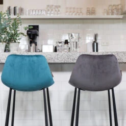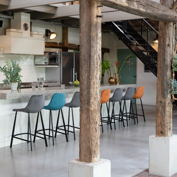 Op de lage Dutchbone Franky barstoel met fluwelen zitting smaakt dat koude biertje extra lekker! Bovendien gebruik je de bartafel voortaan ook voor gezellige maaltijden, want je zit heerlijk comfortabel op deze barstoel met rugleuning en voetensteun. Welke kleur is jouw favoriet: grijs, oranje, petrol of roze? Combineren kan natuurlijk ook. De fluwelen zitting geeft de barstoel een retro tintje.