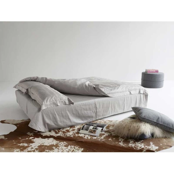 De Innovation Living Long Horn slaapbank heeft een modern, Scandinavisch design met een standaard stoffering in grijs; een stijlvolle tint die goed samen gaat met houten vloeren en diverse kleurtonen. Op verzoek zijn echter nog veel meer stoffen mogelijk! Kom gerust langs in de winkel om kleurstalen in het echt te ervaren óf bestel voor thuis. Voor niet-standaard stoffen geldt een meerprijs en een langere levertijd. De luxe slaapbank is uit te klappen tot een luxe tweepersoons bed van 140 bij 210 centimeter en wordt geleverd met twee bijpassende kussens.