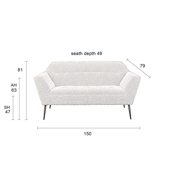 - Zithoogte 47 cm zitdiepte 50 cm armhoogte 63 cm