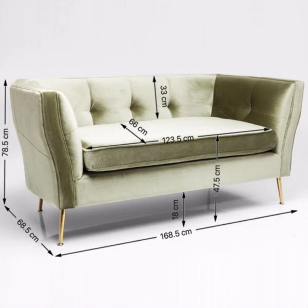De Kare Design Rimini 2-zitsbank brengt een klassieke look naar je huiskamer, maar dan wel met een extravagant tintje! Daar zorgen de koperkleurige poten en velvet bekleding wel voor. Zo is de groene 2-zitsbank een echte blikvanger in je interieur. Maak het klassieke plaatje compleet met een antieke wandkast met ornamenten erbij, of een charmante salontafel met gebogen poten.