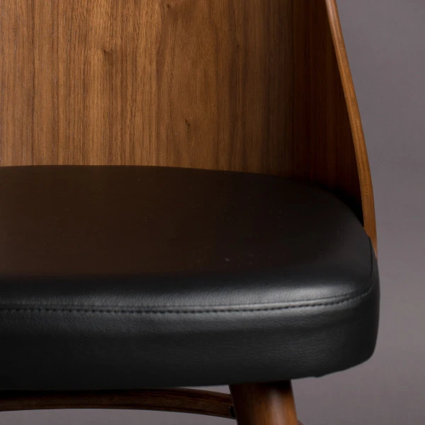 Bijzonder aan de Dutchbone Chaya eetkamerstoel is de hoge rugleuning van walnoot fineer, die voor een gezellige sfeer in de eetkamer zorgt. Dankzij het kussen van kunstleer zit je bovendien heerlijk comfortabel op de retro eetkamerstoel! Je gasten blijven graag nog wat langer voor een kopje koffie en een goed gesprek.