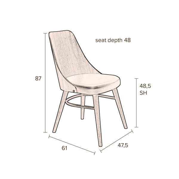 - Zithoogte: 47.5 cm, Zitdiepte: 45.5 cm