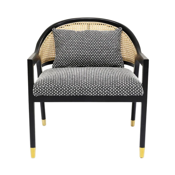 Erg leuk aan de Kare Design Horizon fauteuil is de mix van materialen. Het frame is met de hand gemaakt van zwart gelakt, massief beukenhout. Een rugleuning van rotan webbing zorgt voor sfeer; de messing voetjes brengen een chique stijlaccent. En een gezellig zitkussen maakt de retro fauteuil helemaal af!