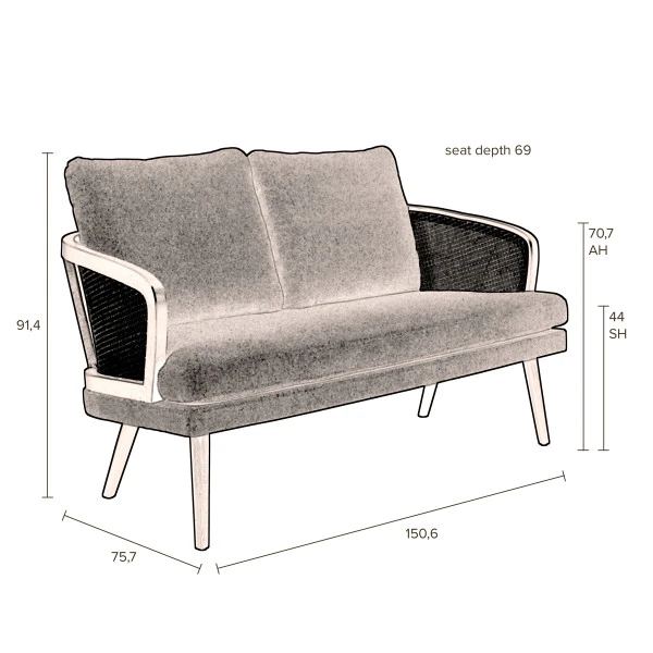 - Zithoogte: 44.1 cm, Zitdiepte: 69 cm