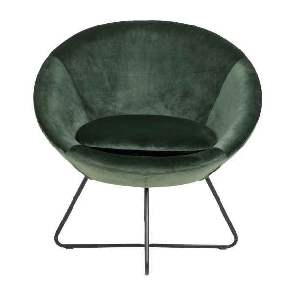 Deze ronde fauteuil vormt een design decoratie in je interieur: de fluwelen zitting is in speels contrast met het metalen kruisframe. Bovendien zit de fluwelen fauteuil heerlijk comfortabel met haar zachte kussens en brede rugleuning! Trek je benen lekker op en geniet in alle rust van een mooi boek of een goede film op televisie.