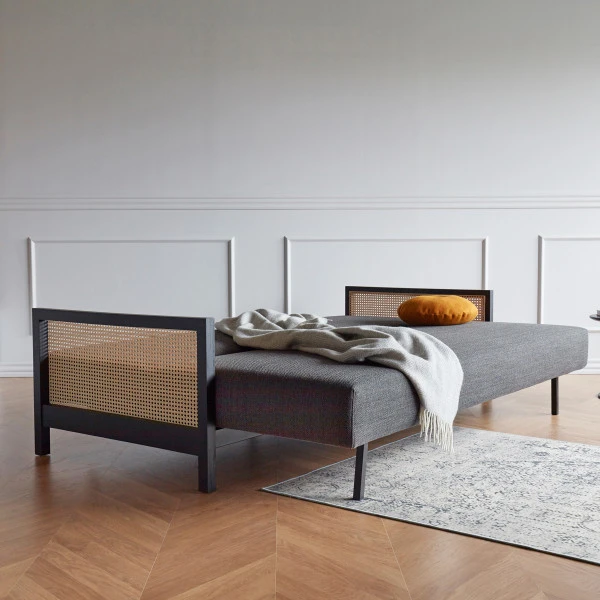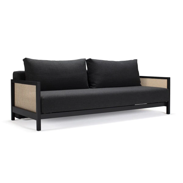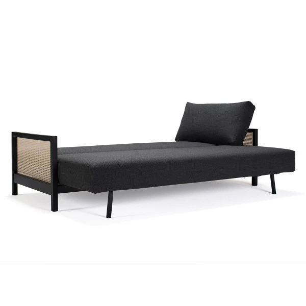 De slaapbank Innovation Living Narvi is voorzien van een zwart houten frame en webbing armleuningen die het moderne design een retro tintje geven. Kies uit twee standaard stofferingen of bezoek de winkel om nog veel meer stoffen te bekijken: zo creëer je een persoonlijk geheel dat perfect in je zithoek past! Voor niet-standaard stoffen geldt een meerprijs en een langere levertijd. Uitgeklapt biedt de slaapbank een comfortabel en volwaardig bed van 140 bij 200 centimeter.