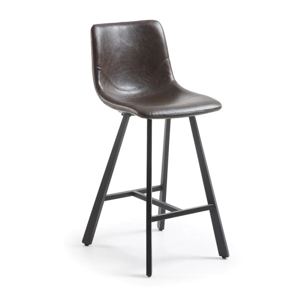 Deze stoere Kave Home Trap barkruk past mooi aan een kookeiland in de keuken: dat staat gezellig, en je kunt zo nu en dan even gaan zitten om je benen of rug wat rust te geven. De barkruk heeft een zitting van geborsteld PU leder. In combinatie met het onderstel van staal zorgt het PU leder voor een industriële look.