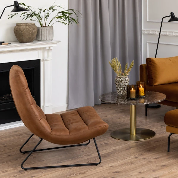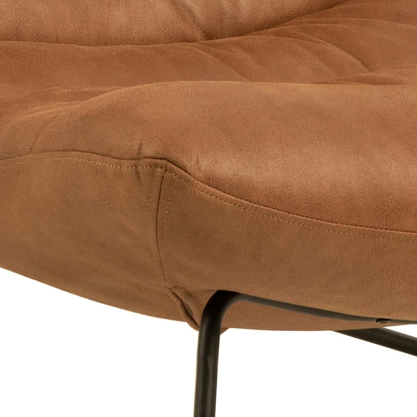 De lounge fauteuil heeft een stoere uitstraling dankzij de robuuste kussens van leer en stof. Ook het metalen onderstel draagt bij aan de modern-industriële look. Schuif de lounge fauteuil aan in de zithoek of geef een eigen plekje bij het raam, met een bijzettafel en leeslamp ernaast in dezelfde stoere stijl.