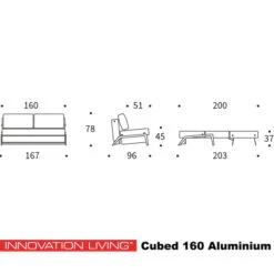 De Innovation Living Cubed serie herken je aan het hoekige design met een moderne uitstraling. De Cubed 160 Aluminium tweepersoons slaapbank heeft een bed van 160 centimeter breed. Past de slaapbank nét niet in je woning? In de serie vind je ook een smaller model slaapbank met een bed van 140 bij 200 centimeter.
