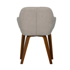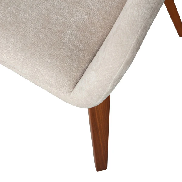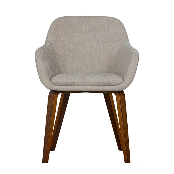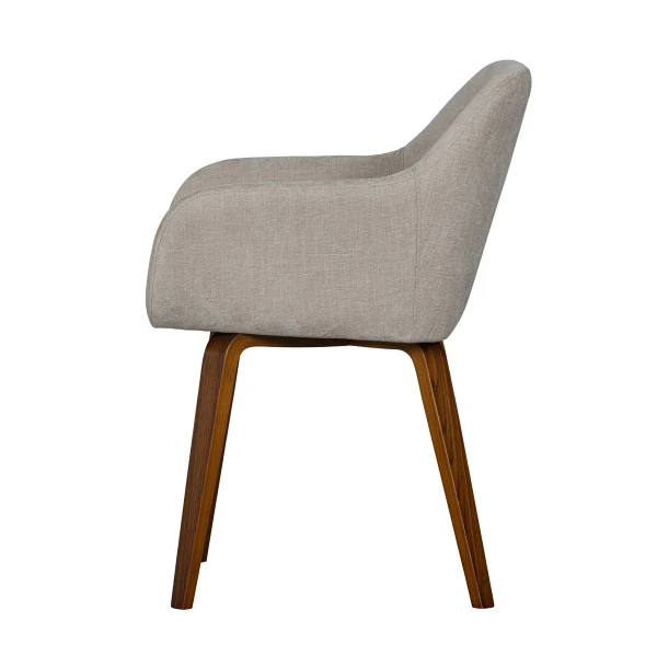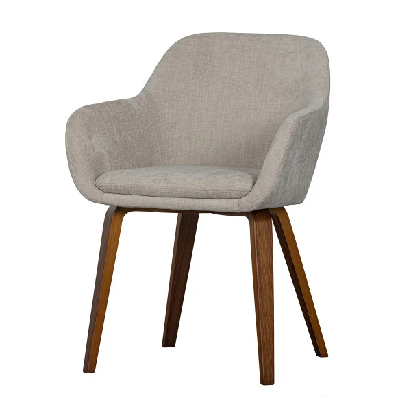 De VTwonen Base eetkamerstoel heeft een retro design, met een velvet bekleding en ronde lijnen. Poten van prachtig, donker walnoot fineer geven de eetkamerstoel een natuurlijke uitstraling. Daarboven komt de melange zand kleur van de velvet bekleding extra mooi tot recht. Een echte sfeermaker in je interieur!