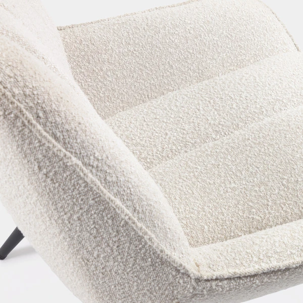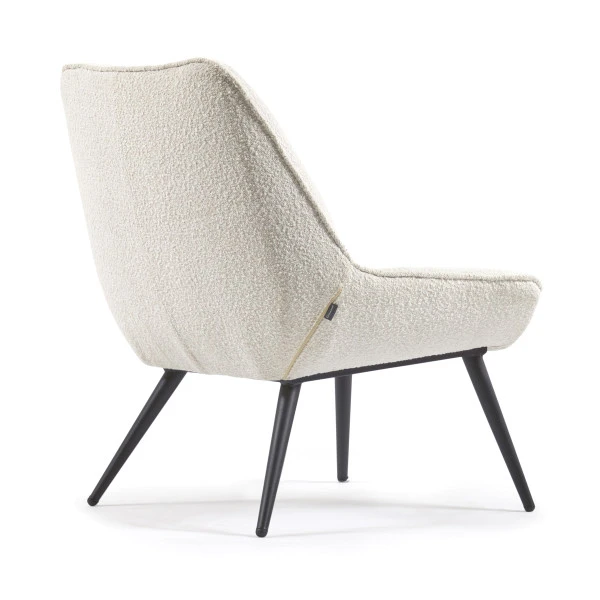 Met de Kave Home Marlina fauteuil in de zithoek is je lange werkdag gauw vergeten. Zak heerlijk weg in de zachte kussens van witte bouclé met schuimvulling. De fauteuil is zo breed dat je er met opgetrokken benen in kunt zitten; een dekentje over je knieën op een koude winteravond. Genieten! De witte bouclé fauteuil met zwart metalen poten past mooi in een modern of retro interieur.