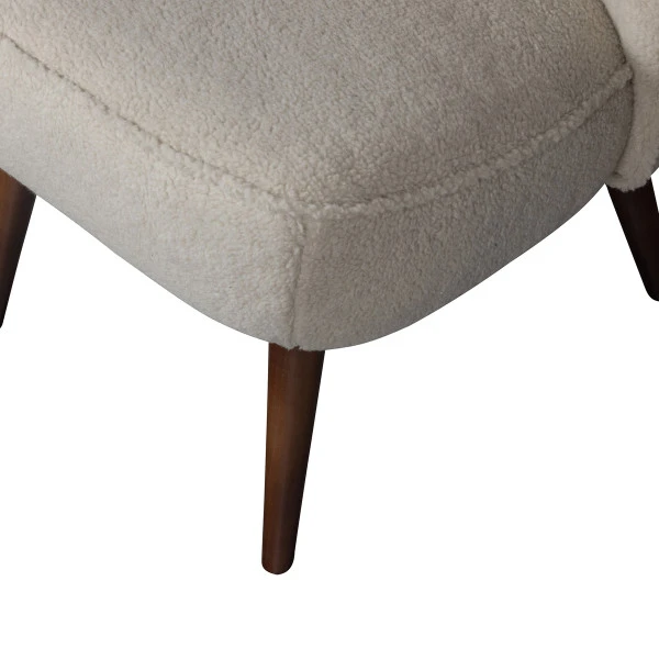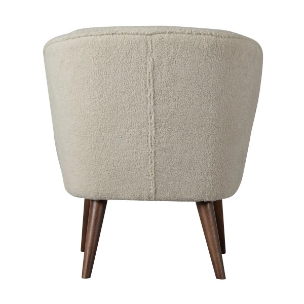 De Woood Sara Teddy fauteuil nodigt je uit om lekker een avondje te ontspannen. Zak weg in de zachte kussens van teddy stof en geniet van een film, boek of gezellig gesprek! Dankzij de neutrale crème kleur van de teddy stof gaat de fauteuil samen met verschillende kleuren vloeren en gordijnen. Poten van donker berkenhout geven de fauteuil een koloniaal sfeertje.