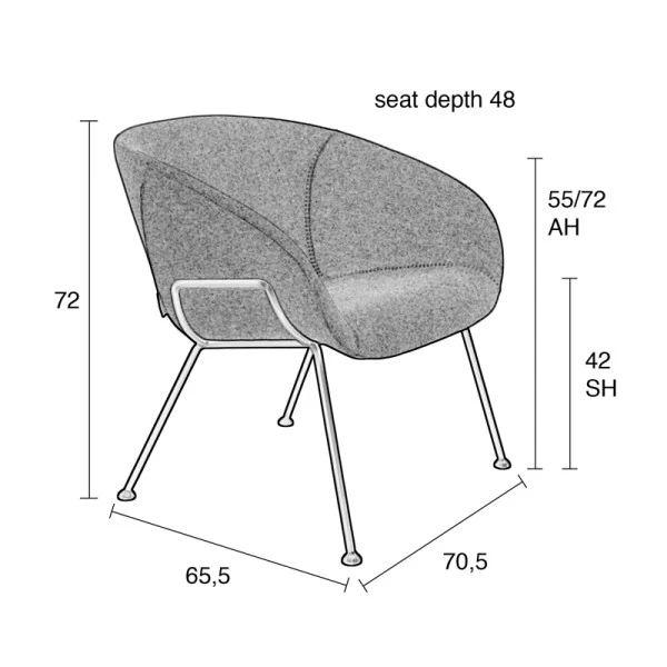- Zithoogte: 42 cm, Zitdiepte: 48 cm