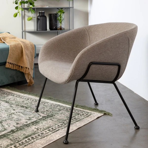 De Zuiver Feston fauteuil heeft een elegant en slank onderstel, dat een speels geheel vormt met de kuipzitting van stof. Omdat de fauteuil een brede zitting heeft die een beetje achterover helt, kun je er heerlijk in ontspannen! Zet de fauteuil bij het raam en geniet in het zonnetje van een goed boek, of plaats er twee naast elkaar in de zithoek met een bijzettafeltje ertussen.