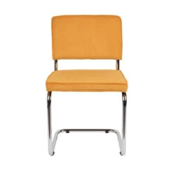 Je herkent de Zuiver Ridge serie aan het stijlvolle sledeframe van chroom. Behalve deze stoel voor in de eetkamer vind je in de serie ook een bijpassende fauteuil van ribstof en een armstoel voor aan tafel.