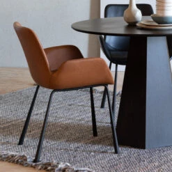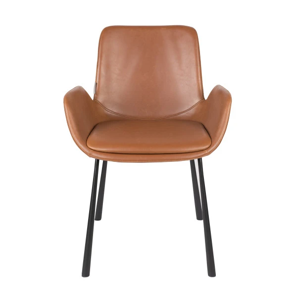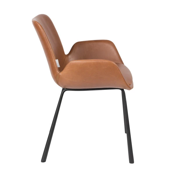 Met de Zuiver Brit LL eetkamerstoel aan tafel combineer je comfort en design. Een mix van luxe armleuningen, zacht kunstleer en een vulling van PU-foam maken de eetkamerstoel bijzonder aangenaam! Voortaan blijf je graag nog even zitting voor een goed gesprek na het eten. De eetkamerstoel van kunstleer is verkrijgbaar in bruin en zwart. Schuif beide kleuren aan tafel voor een speels effect!