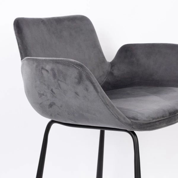 Kenmerkend voor de Zuiver Brit serie is het elegante design met armleuningen in de vorm van vleugels. Slanke, speelse poten van zwart gepoedercoat metaal maken de meubels compleet. Behalve deze fluwelen barstoel vind je in de serie ook een leren barstoel én bijpassende eetkamerstoelen.