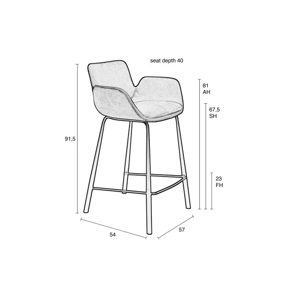 - Zithoogte: 67,5 cm, Zitdiepte: 40 cm