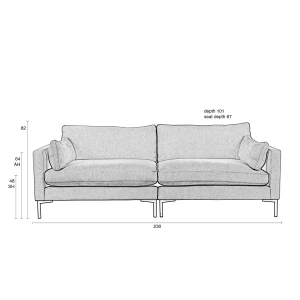 De Zuiver Summer sofa heeft een stijlvol modern design, maar er is ook veel oog voor sfeer! Daar zorgen de gestoffeerde, grote kussens wel voor. Bovendien biedt de sofa met Nosag vering en schuim vulling veel zitcomfort. Je hebt keuze uit twee kleuren: beige of antraciet. Daarnaast is de sofa verkrijgbaar in een 3-zits of een 4-zits variant. Hoeveel ruimte heb jij in de woonkamer?