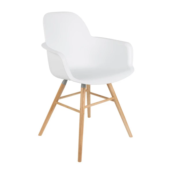 - Eetkamerstoel in een modern design met kunststof kuip en poten van massief essenhout