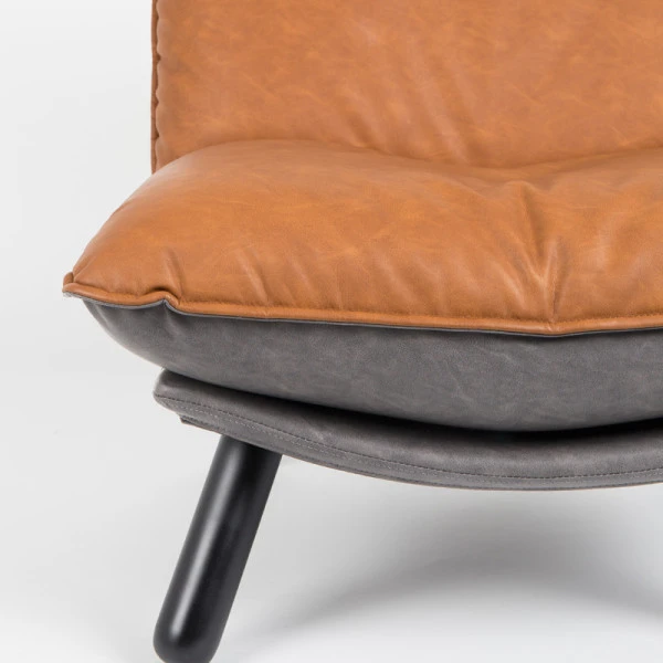 - Bekleding: vintage PU-leer. Poten: massief beukenhout met mat zwarte poedercoating