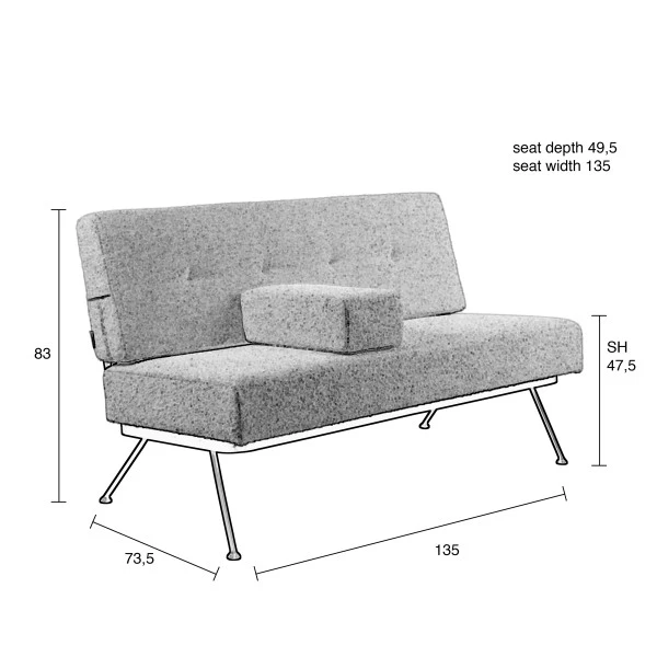 - Zithoogte: 47,5 cm, Zitdiepte: 49,5 cm