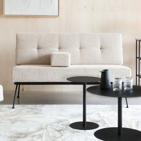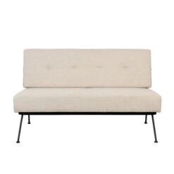 Het Zuiver Bowie bankje zit net zo comfortabel als het lijkt: dankzij de dikke kussens met zachte bouclé stof kan de avond je niet lang genoeg duren! Met een breedte van 135 centimeter neemt het bankje een bescheiden plaats in de zithoek in. Speelse poten en dikke kussens van bouclé geven het bankje een retro design.