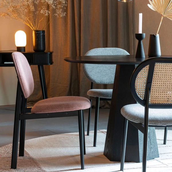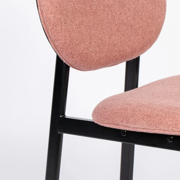 De Zuiver Spike eetkamerstoel heeft een retro design met ronde vormen en een zitting van gemêleerde stof. Daarbij heb je keuze uit twee kleuren: grijs of roze. Beide komen extra mooi uit dankzij het zwart metalen frame. Combineer de twee kleuren samen aan tafel voor een gezellig geheel! De eetkamerstoel zit bovendien heel comfortabel dankzij de kussens van PU-schuim.