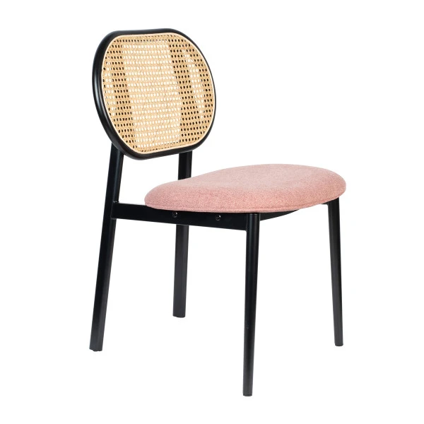 Wat deze Zuiver Spike Webbing eetkamerstoel zo bijzonder maakt is de rotan rug. Samen met het frame van zwart metaal en het zitkussens van stof zorgt de webbing leuning voor een speels geheel! Ook de ronde vormen dragen bij aan het retro design van de eetkamerstoel. Je hebt keuze uit twee kleuren zitting: roze of grijs. Combineer ze aan tafel om je eethoek nog gezelliger te maken.