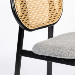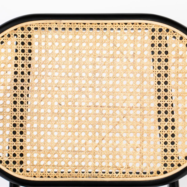 - Rugleuning van zwart gelakt beukenhout met rotan webbing