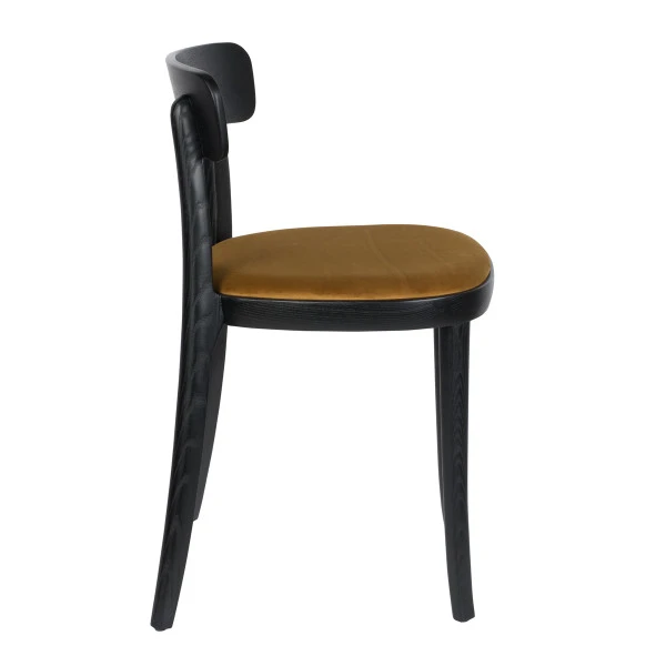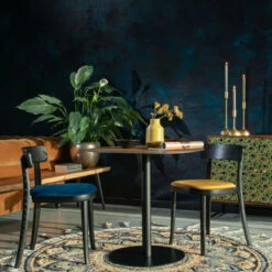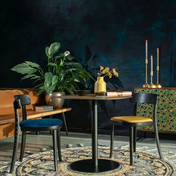Bij de Dutchbone Brandon eetkamerstoel heb je keuze uit vier kleuren fluweel: donkerblauw, okergeel, roze of zwart. Te midden van het zwarte hout komen de fluwelen kussens extra mooi uit! Schuif je favoriete kleur aan een vintage eettafel, of combineer twee kleuren fluweel voor een speels effect.